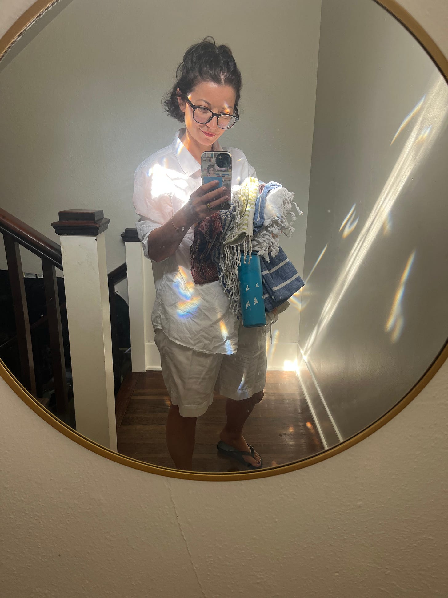A low barrier to entry → I keep slim volumes, poetry, journals within reach and audiobooks queued up for chores. Reading doesn’t always mean a grand stretch of quiet, it can mean Patti Smith in my earbuds while I do the dishes. This past weekend I read while hanging out with family and friends at a lake house in Arkansas. I could have been scrolling but I chose to read instead, even as I was chit-chatting with Ben and Kyle. I reported to work on Monday and no reading quizzes were assigned. (B&K will kill me if they saw that I posted this video.)
