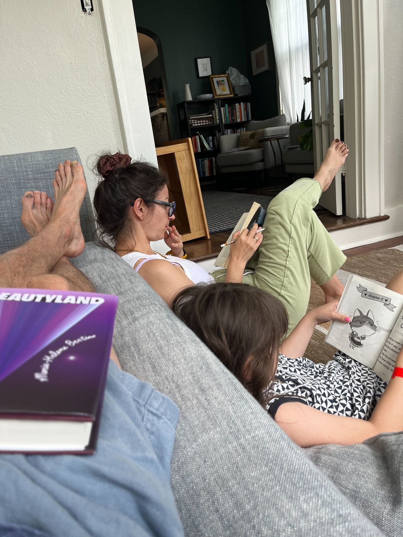 We also love a good library run followed by enjoying our loot at a coffee shop, and cozy weekend reading piles with tea and blankets. I finished Anna Karenina in one of those piles, reading the last pages while my kid read across from me on the couch — one of my happiest hours of 2025.